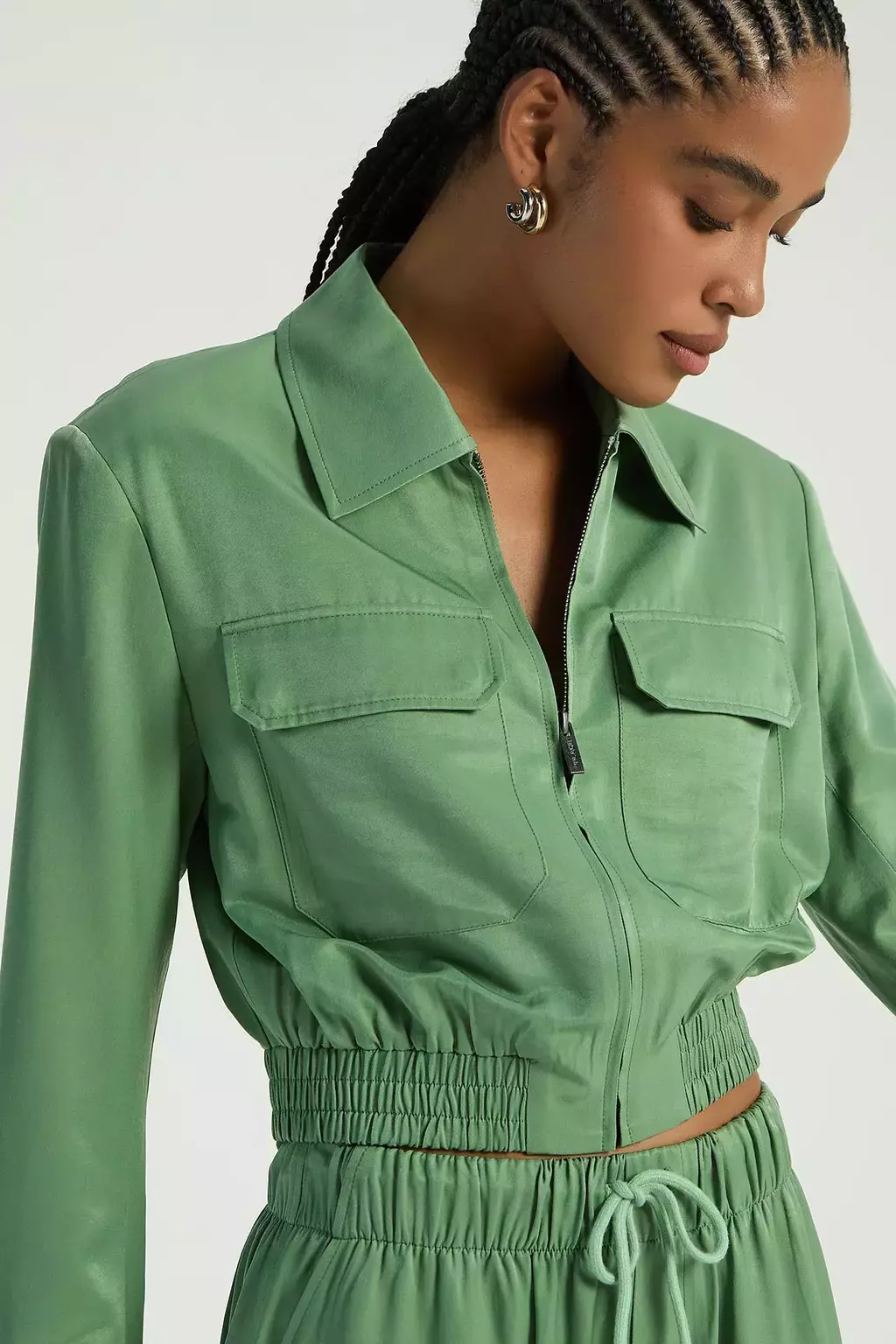 A Jaqueta, de estilo bomber, conta com mangas longas, zíper frontal para fechamento, bolsos frontais e elástico na barra. Ideal para sobrepor a sua composição, trazendo modernidade a um visual casual-chic.