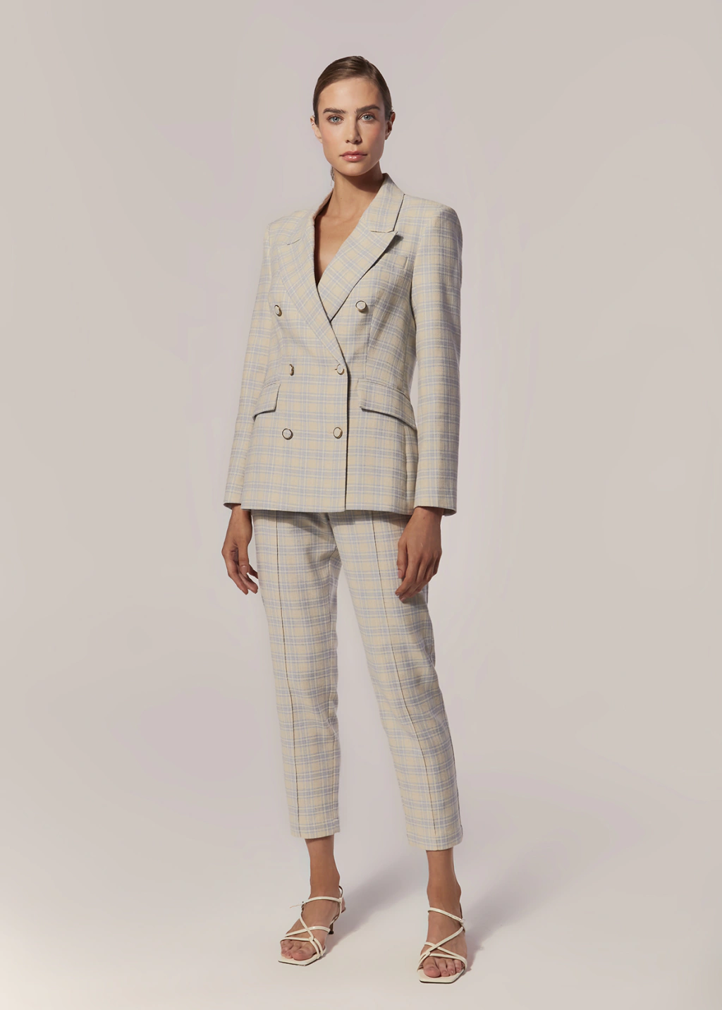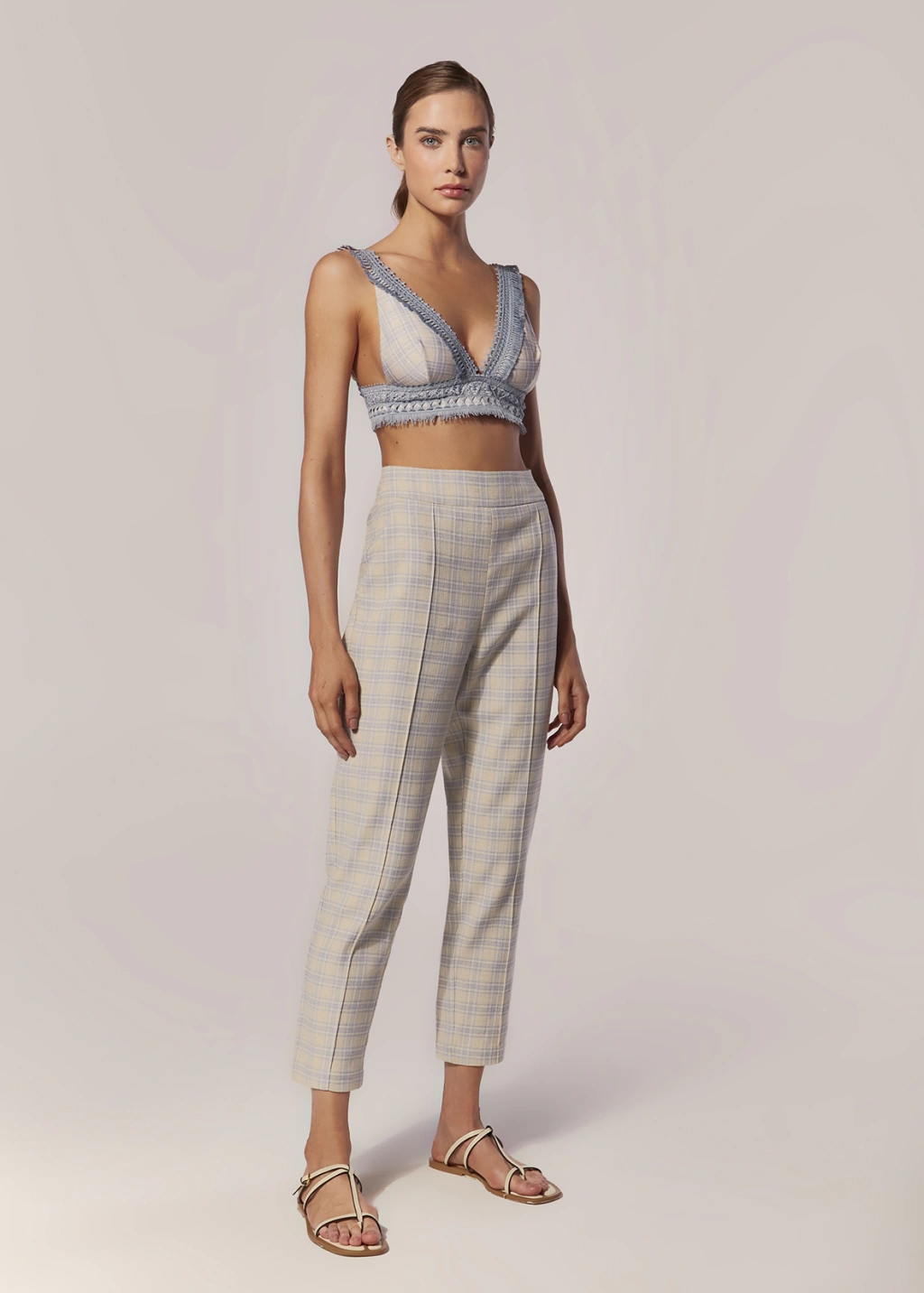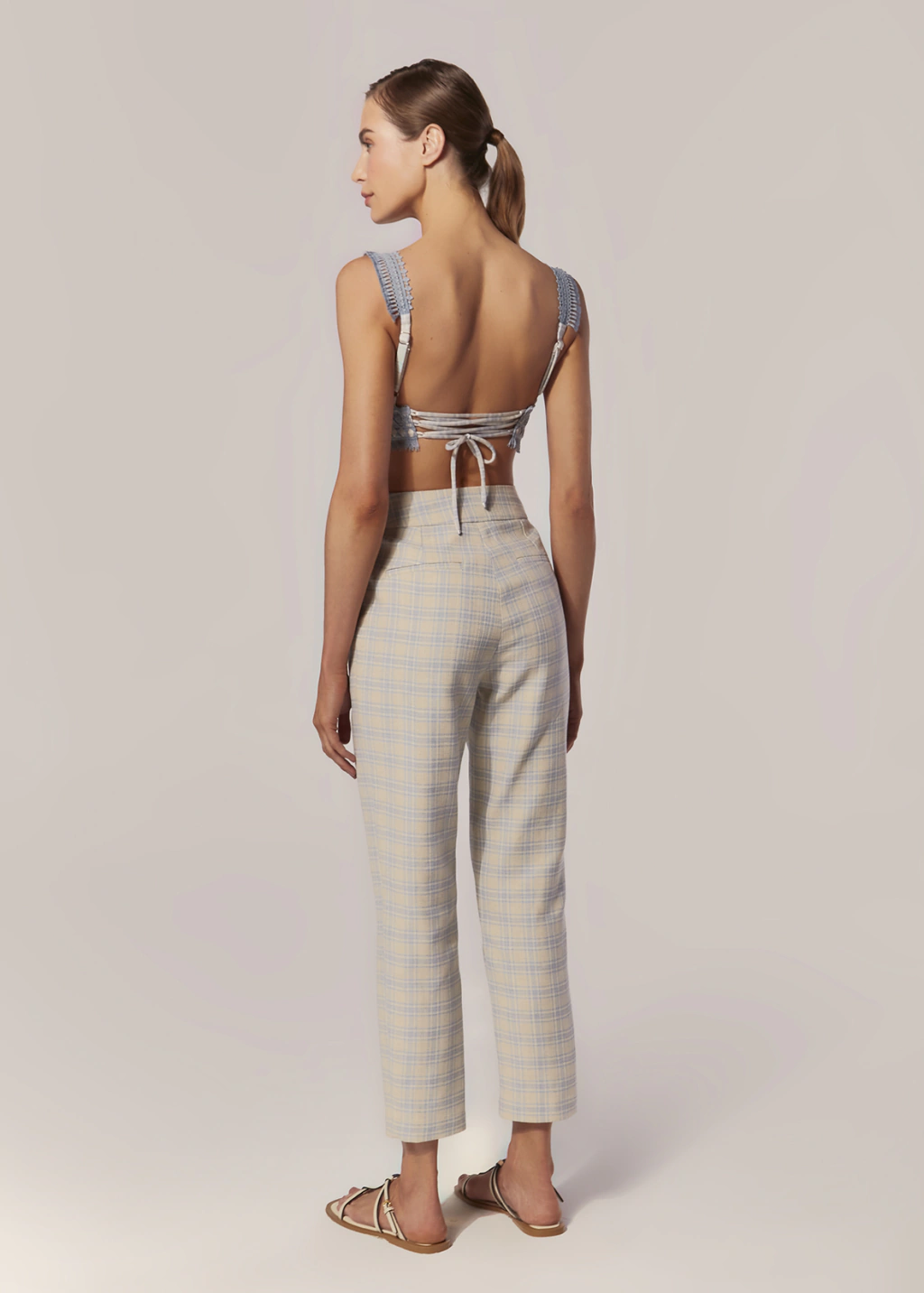 Calça reta alfaiataria slim ecos – A Calça Reta Alfaiataria Slim Ecos traz o modelo tradicional rente ao corpo. Em algodão, viscose e linho traz a combinação de conforto, leveza e sofisticação na mesma peça. Em estampa xadrez na cor azul em tom pastel, a peça traz a estamparia de forma neutra, possibilitando infinitas combinações. Ideal para usar com camisas, tops, blusas e biquinis.