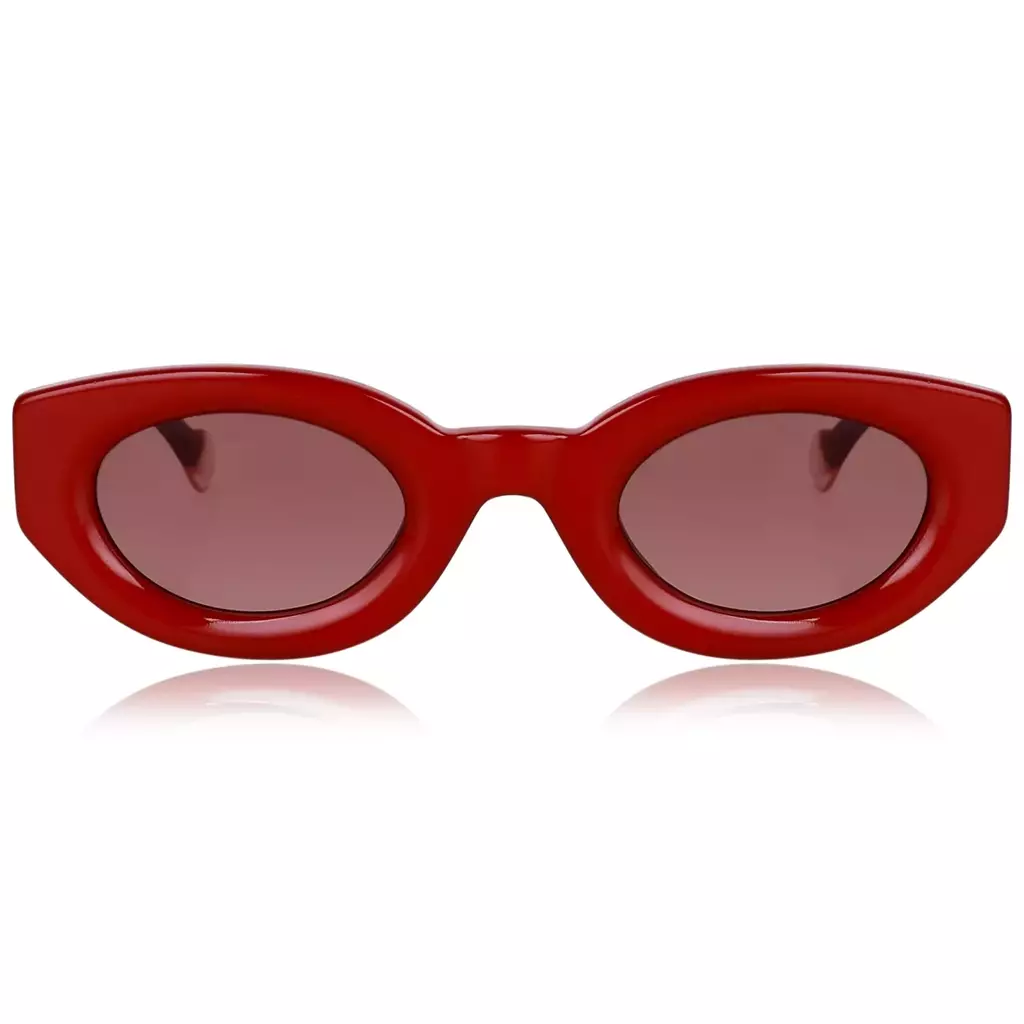 Naomi Red feita em modelagem oval e sofisticada para óculos escuros. O formato oval com sua espessura mais grossa confere um ar retrô moderno, tornando-o perfeito para quem busca um visual único e fashion. Produzido manualmente no Brasil utilizando os melhores materiais primas do mercado: acetato italiano Mazzucchelli e lentes alemãs ZEISS.