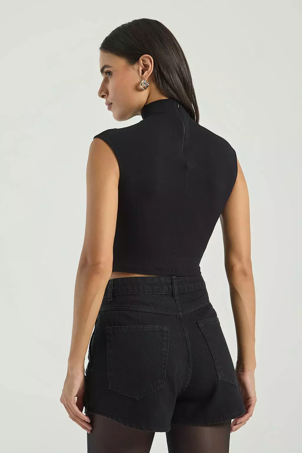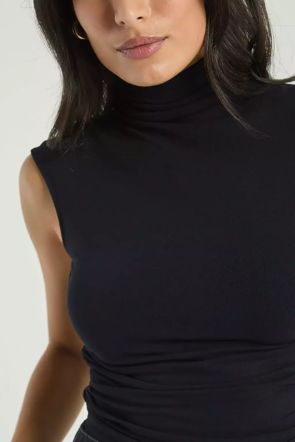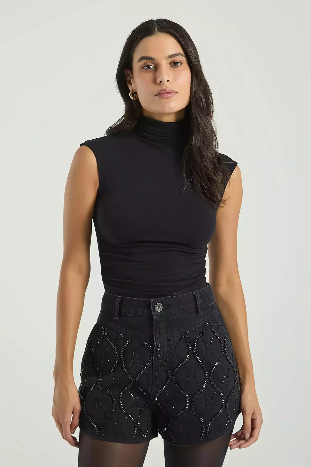 A Blusa possui gola alta, franzimentos laterais e zíper traseiro para fechamento. A blusa ideal para destacar looks simples e transformá-los em modernos.