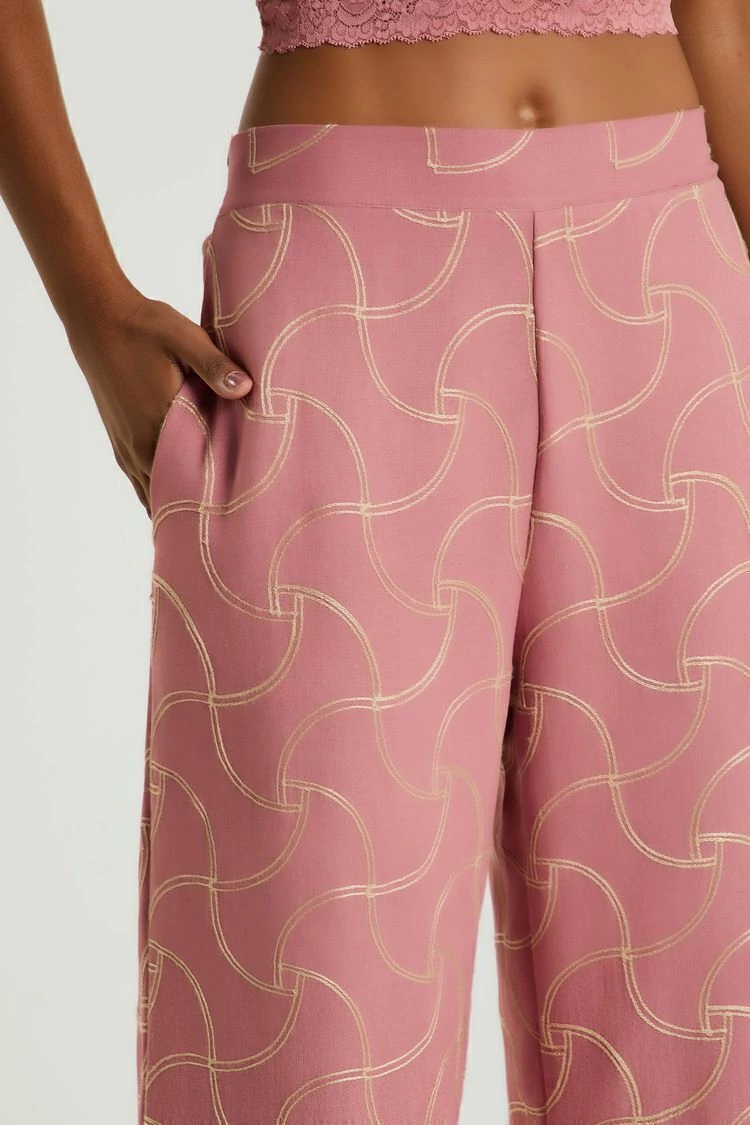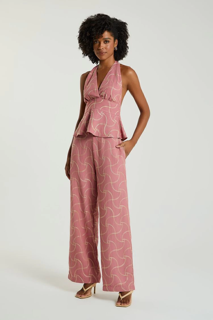 A Calça pantalona apresenta bolsos laterais, bordados em seu comprimento e elástico traseiro no cós. A calça bordada é a peça-chave para criar combinações cheias de personalidade.