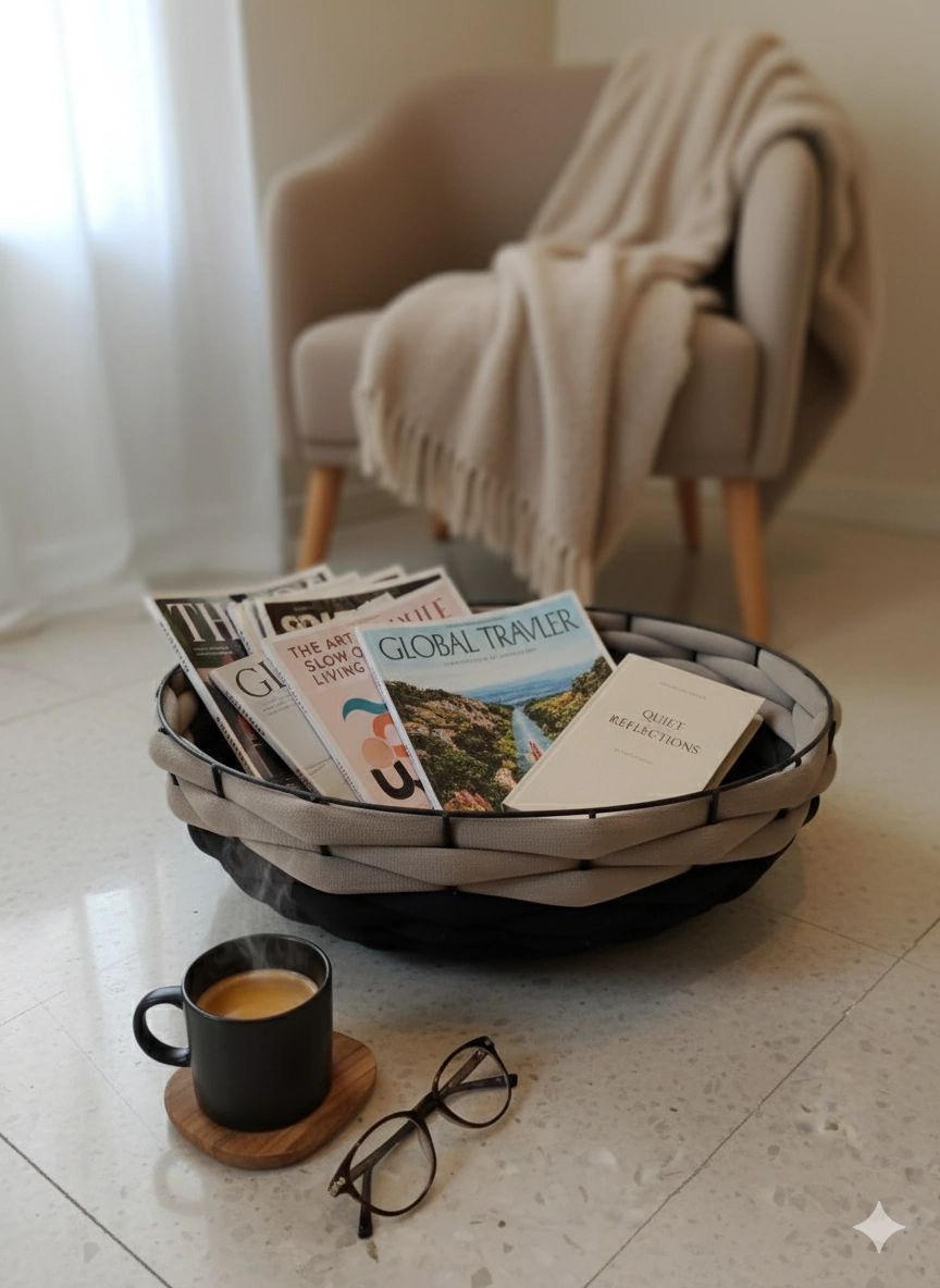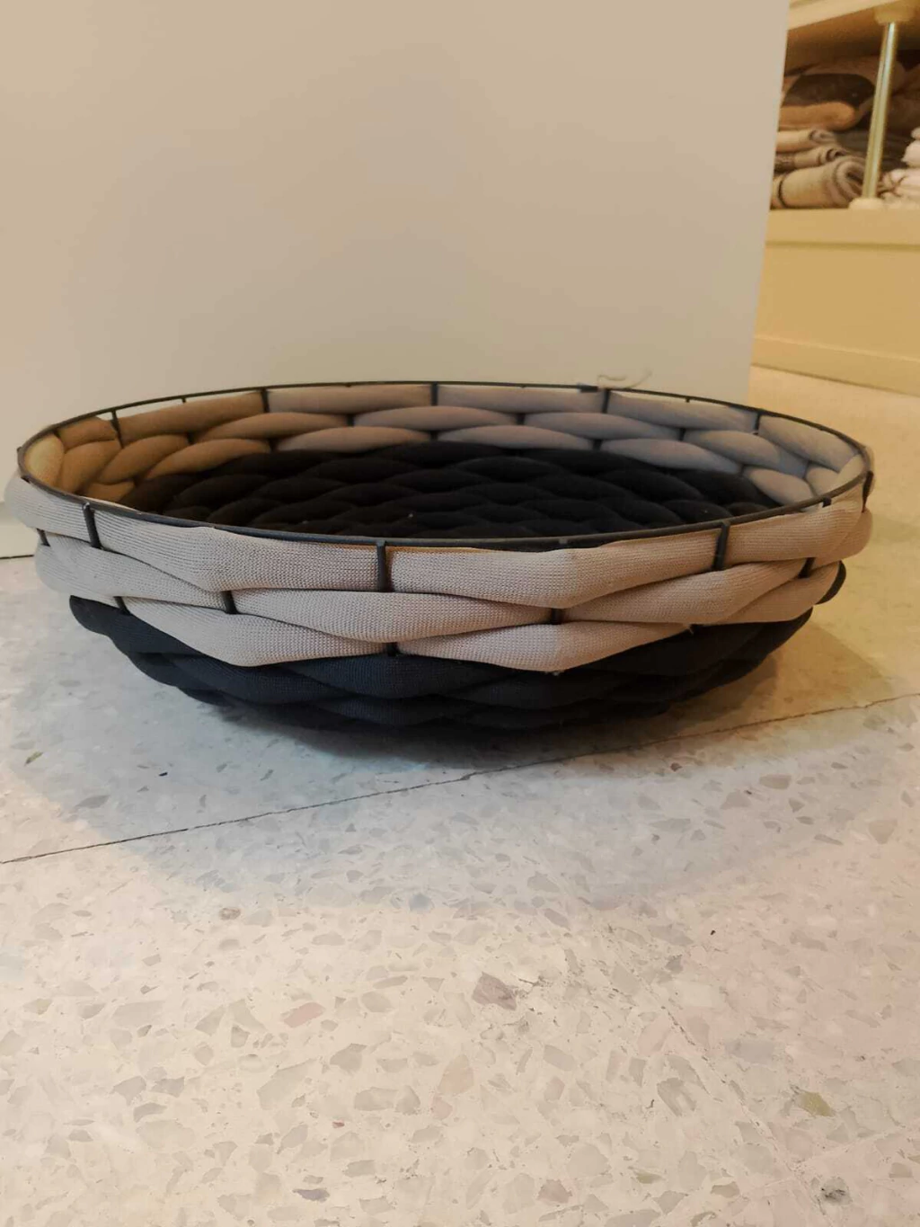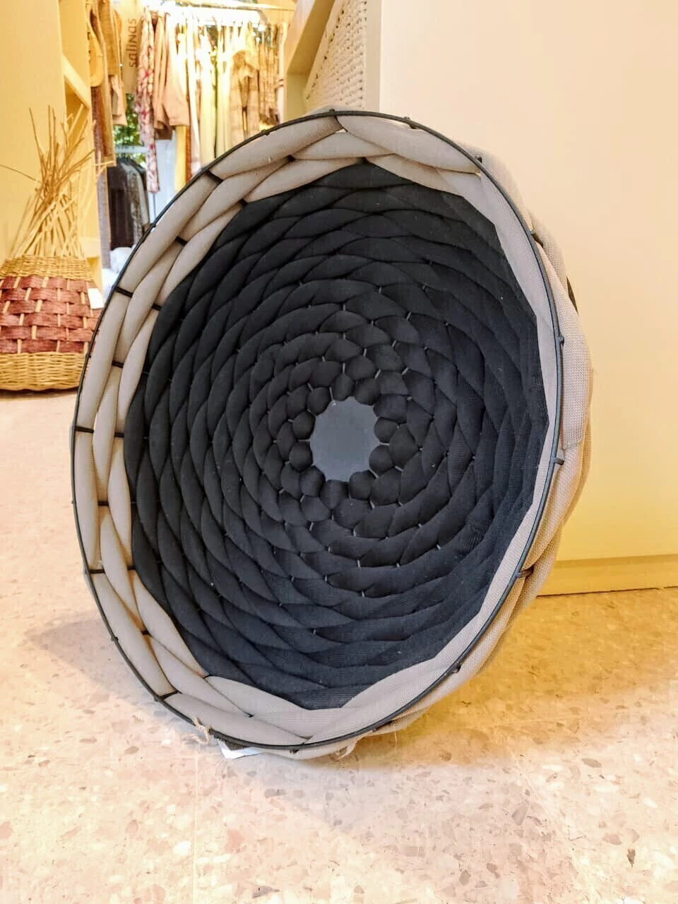 CESTO JACA - REGINA MISK: o equilíbrio perfeito entre modernidade e elegância para sua decoração! Com estrutura metálica robusta e um trançado delicado em tecido preto e bege/cinza, este cesto é uma peça que merece destaque em qualquer ambiente. Além de funcional, seu design contemporâneo transforma o espaço, trazendo charme e sofisticação. Ideal para organizar com estilo e personalidade. Renove seu lar com o toque único do Cesto Jaca!