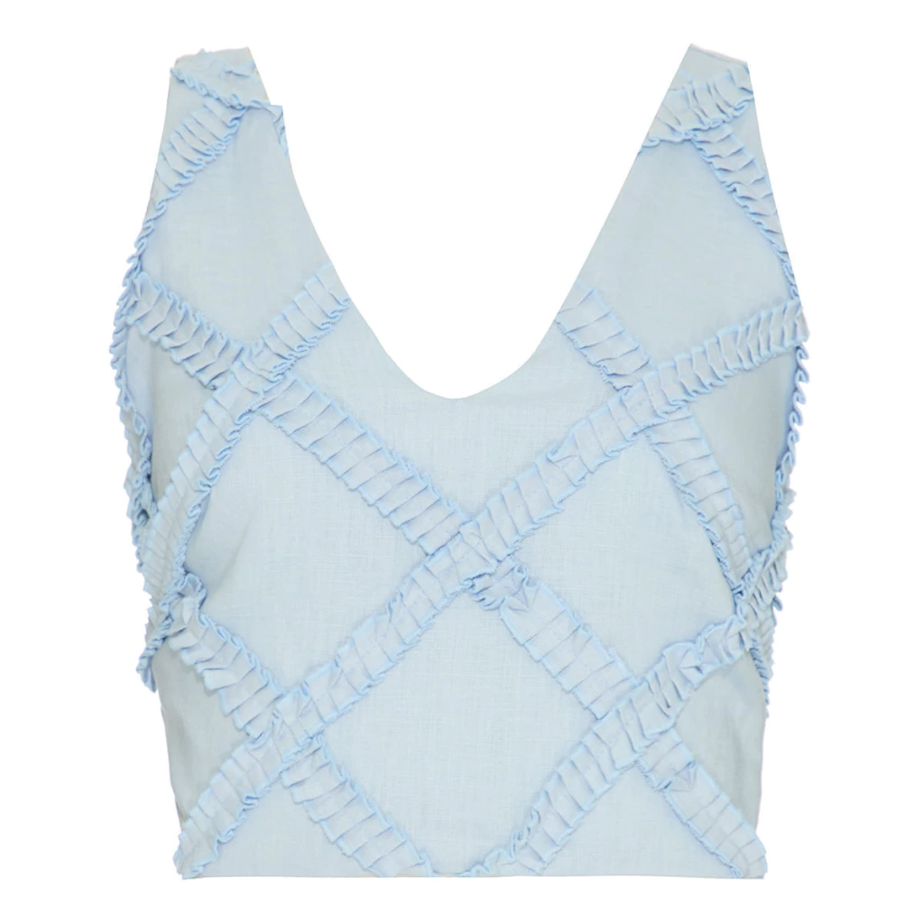 O Top Ariadna é um cropped sofisticado, com detalhes em frufru franzido aplicados manualmente que valorizam o design. A abertura frontal com fechamento coberto e o zíper lateral destacável completam o acabamento refinado da peça. Feito em linho puro, proporciona caimento estruturado e frescor. O tecido natural e os acabamentos embutidos garantem elegância e durabilidade.